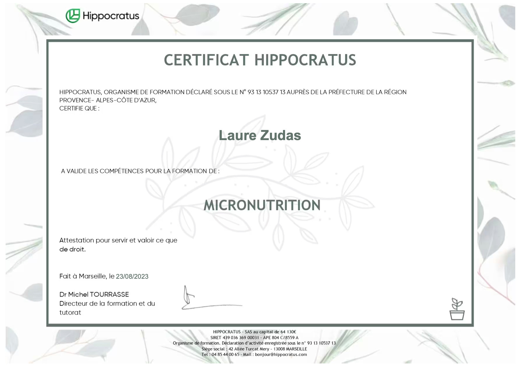 Je suis titulaire d'une certification RNCP pour exercer la sophrologie et formée pour proposer des accompagnements individualisés fondés sur les principes de la naturopathie, notamment :